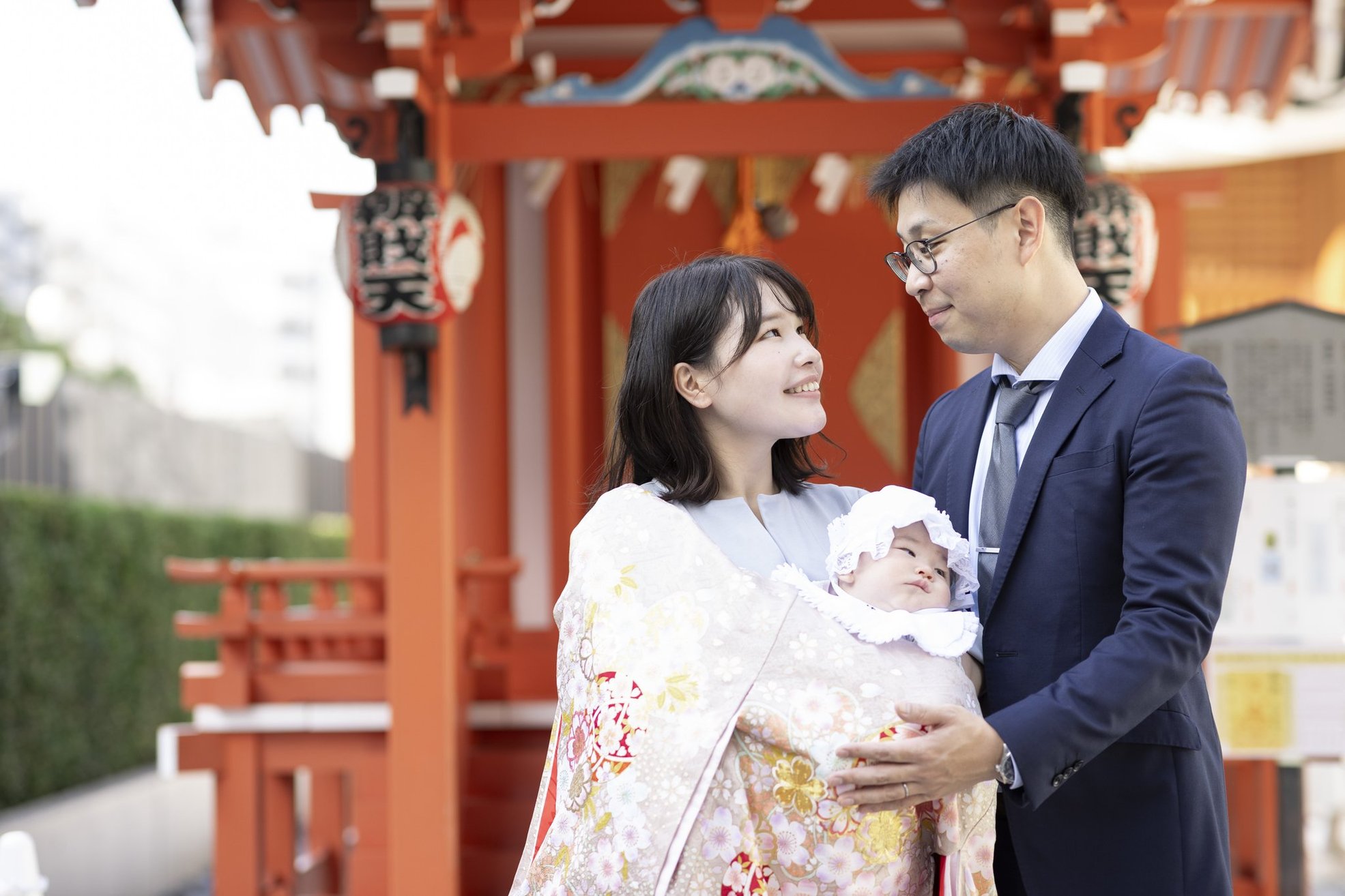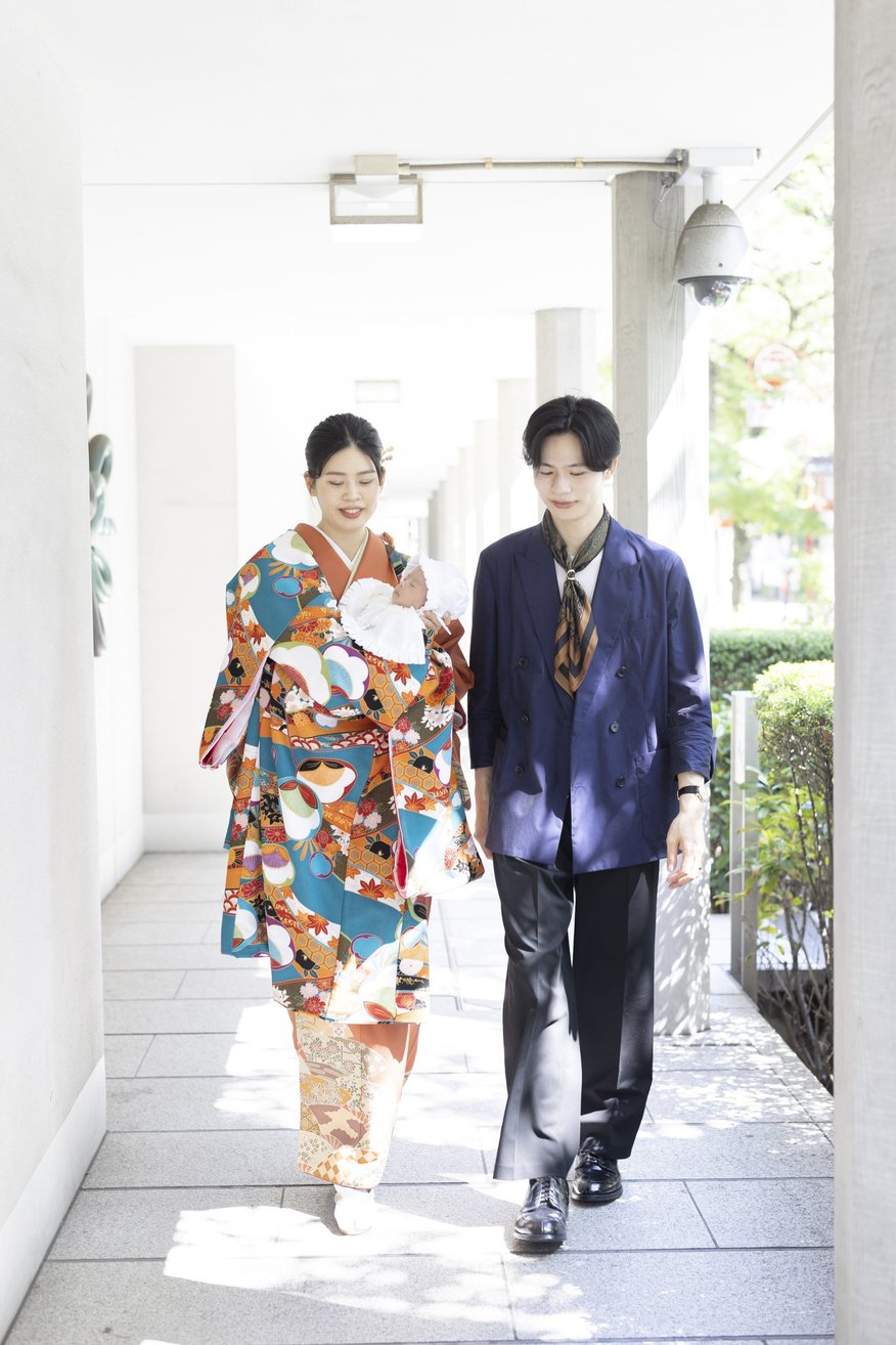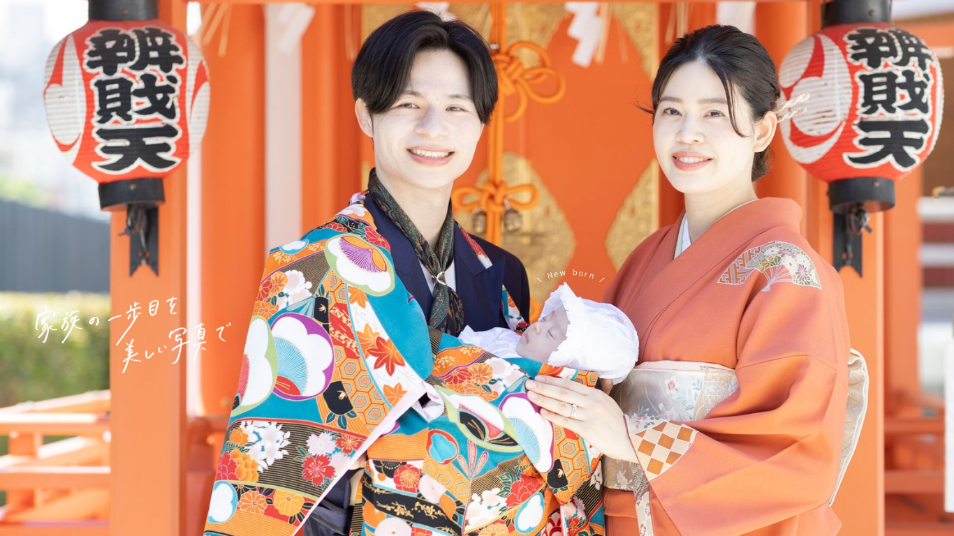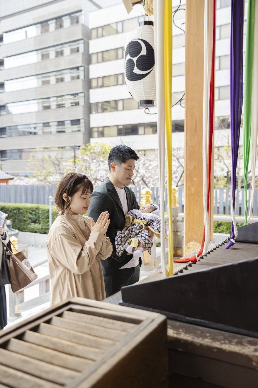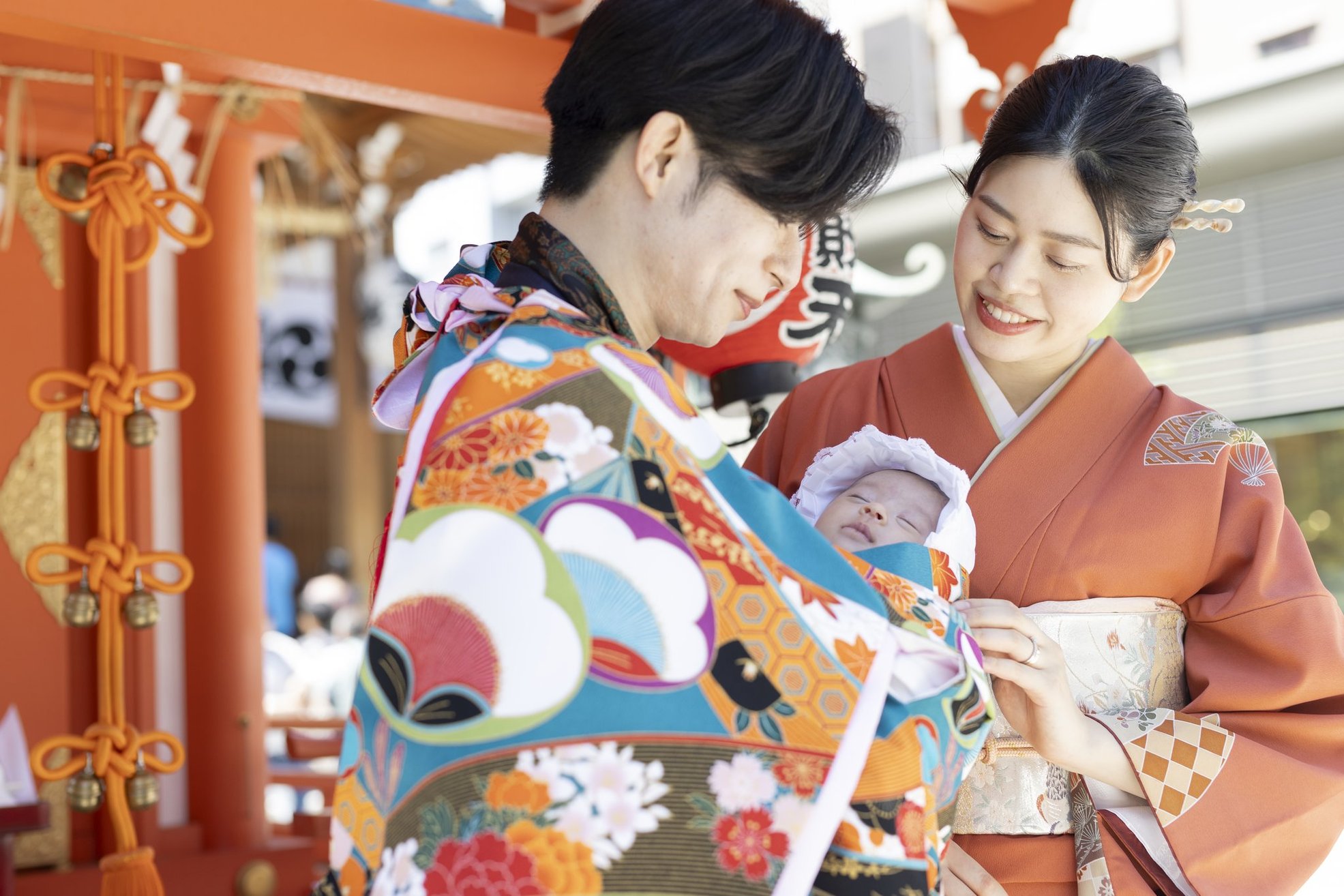 神社でのお参りのシーンはもちろん、赤ちゃんを優しく抱くご両親や、