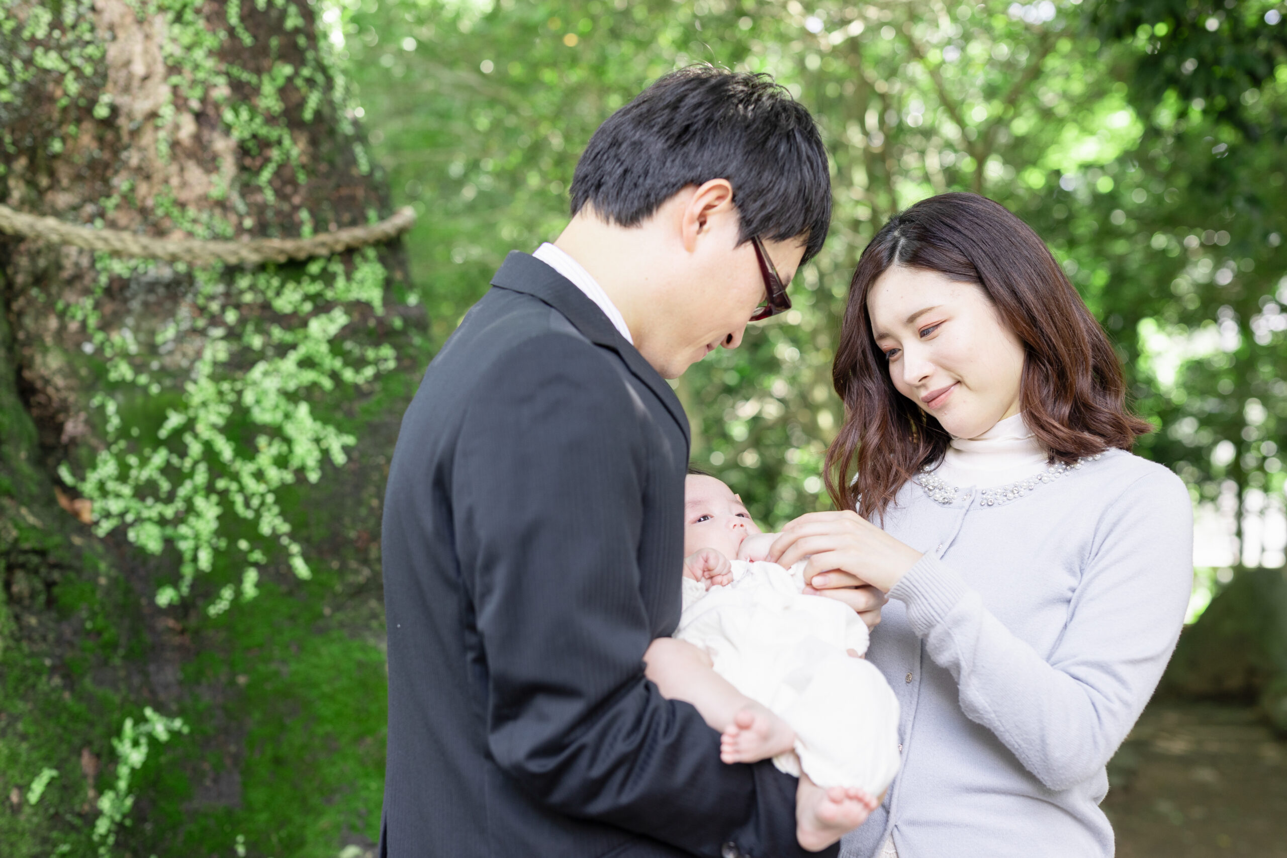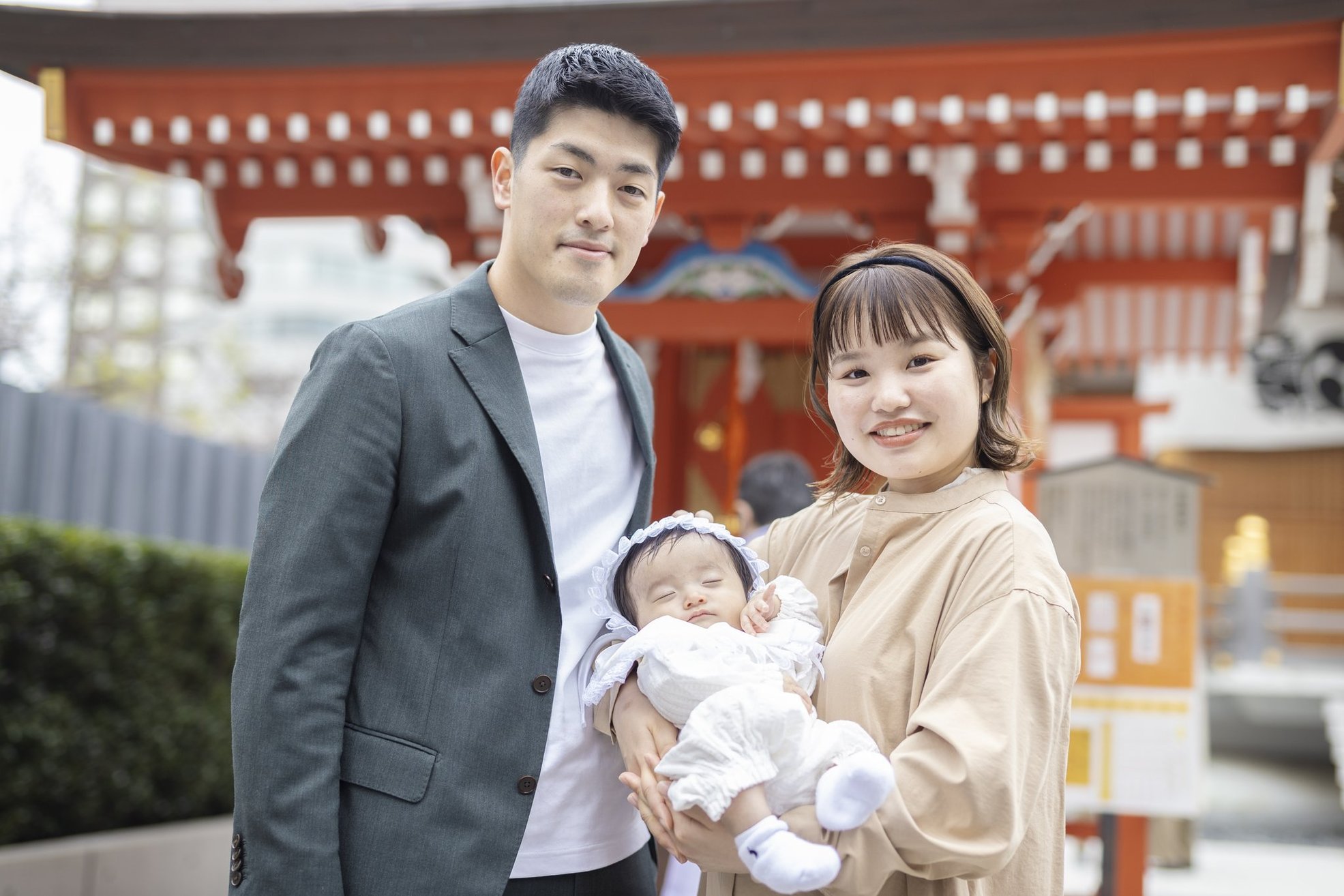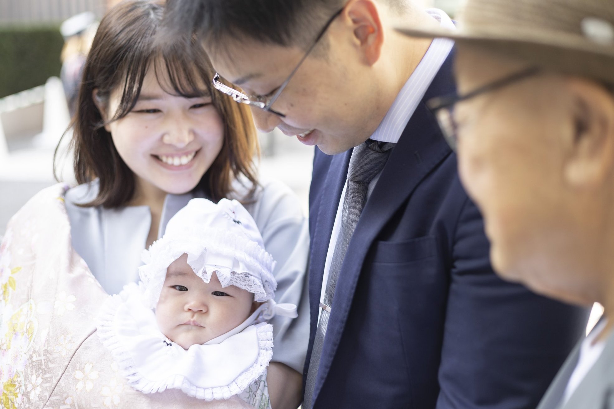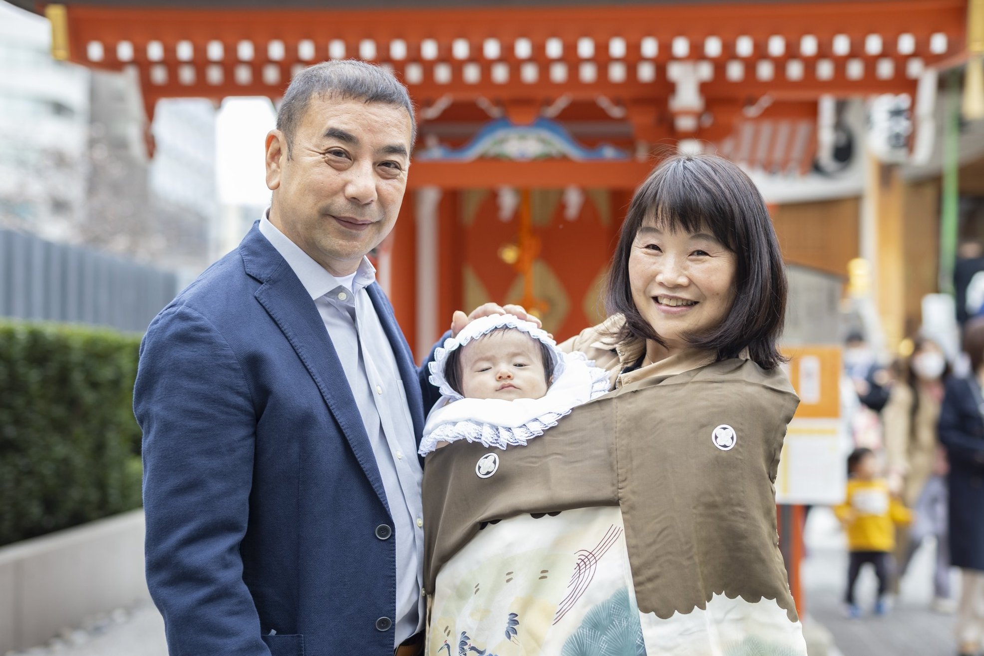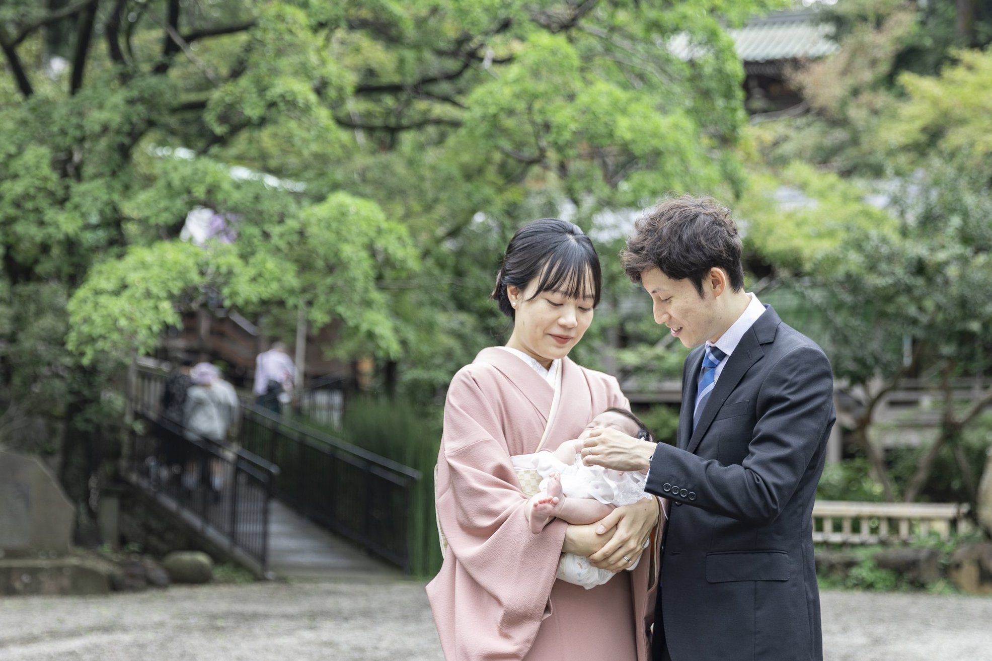 神社でのお参りのシーンはもちろん、赤ちゃんを優しく抱くご両親や、