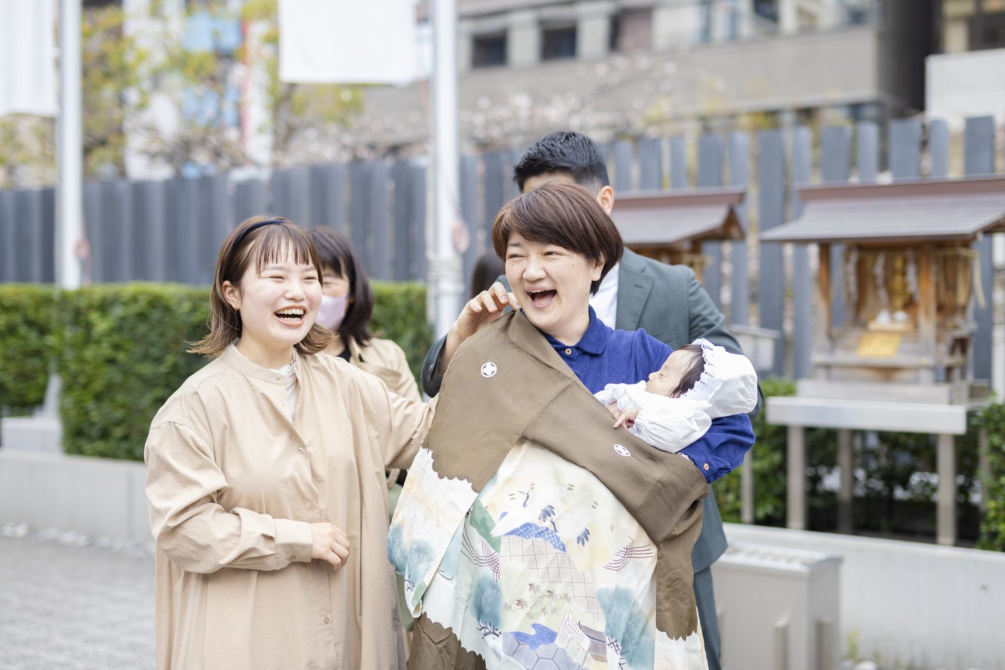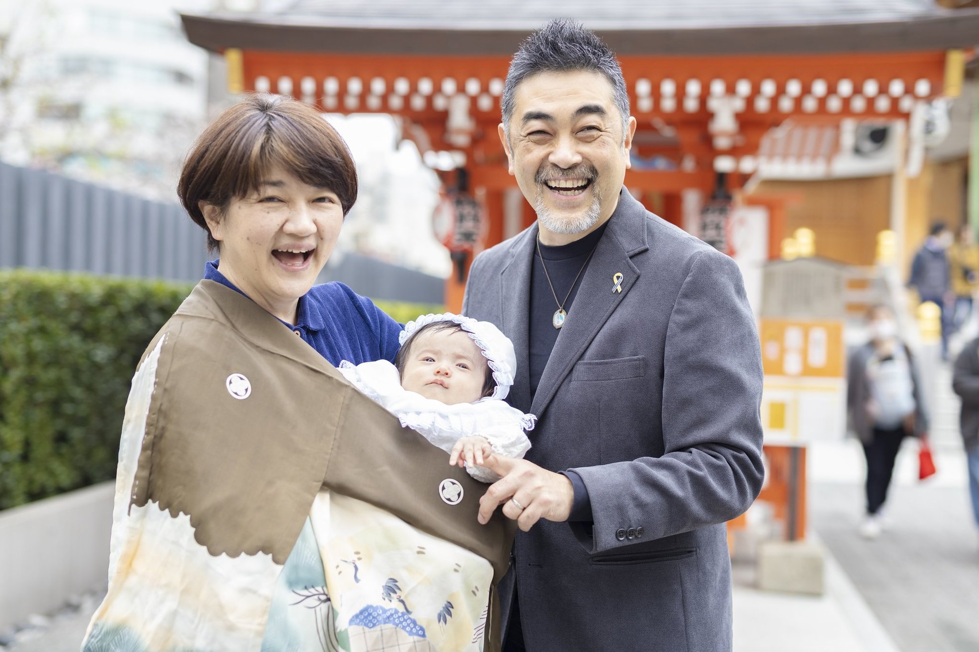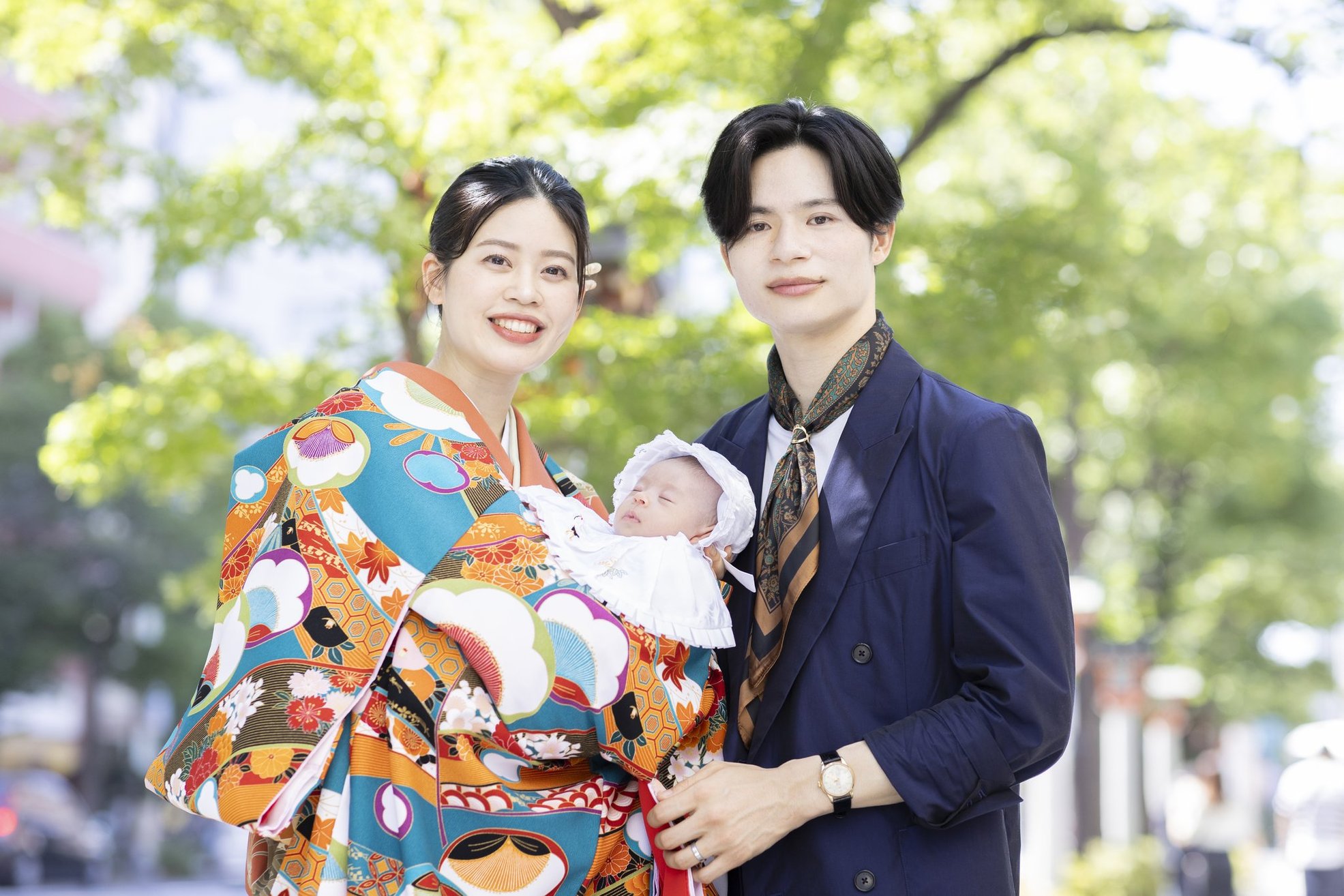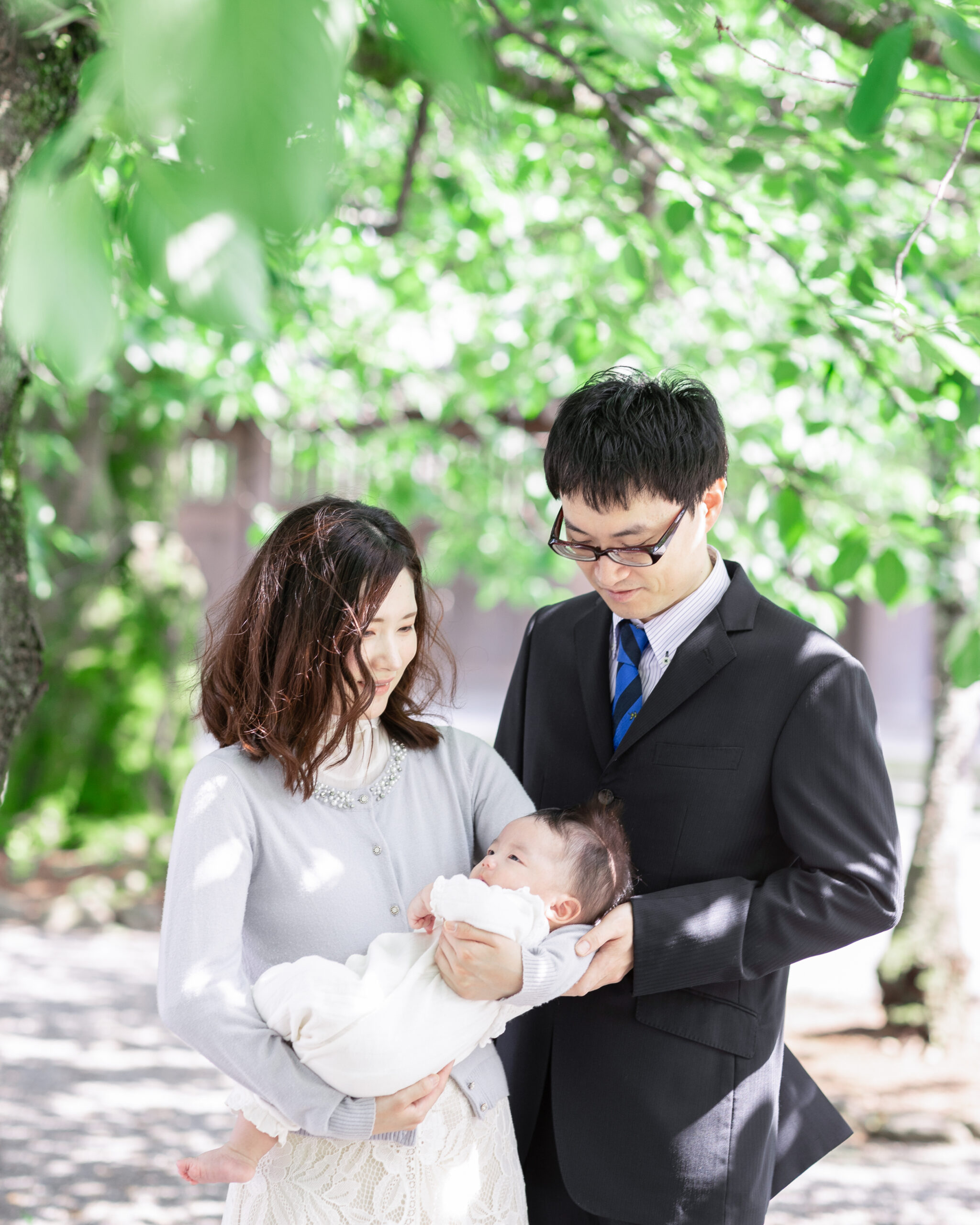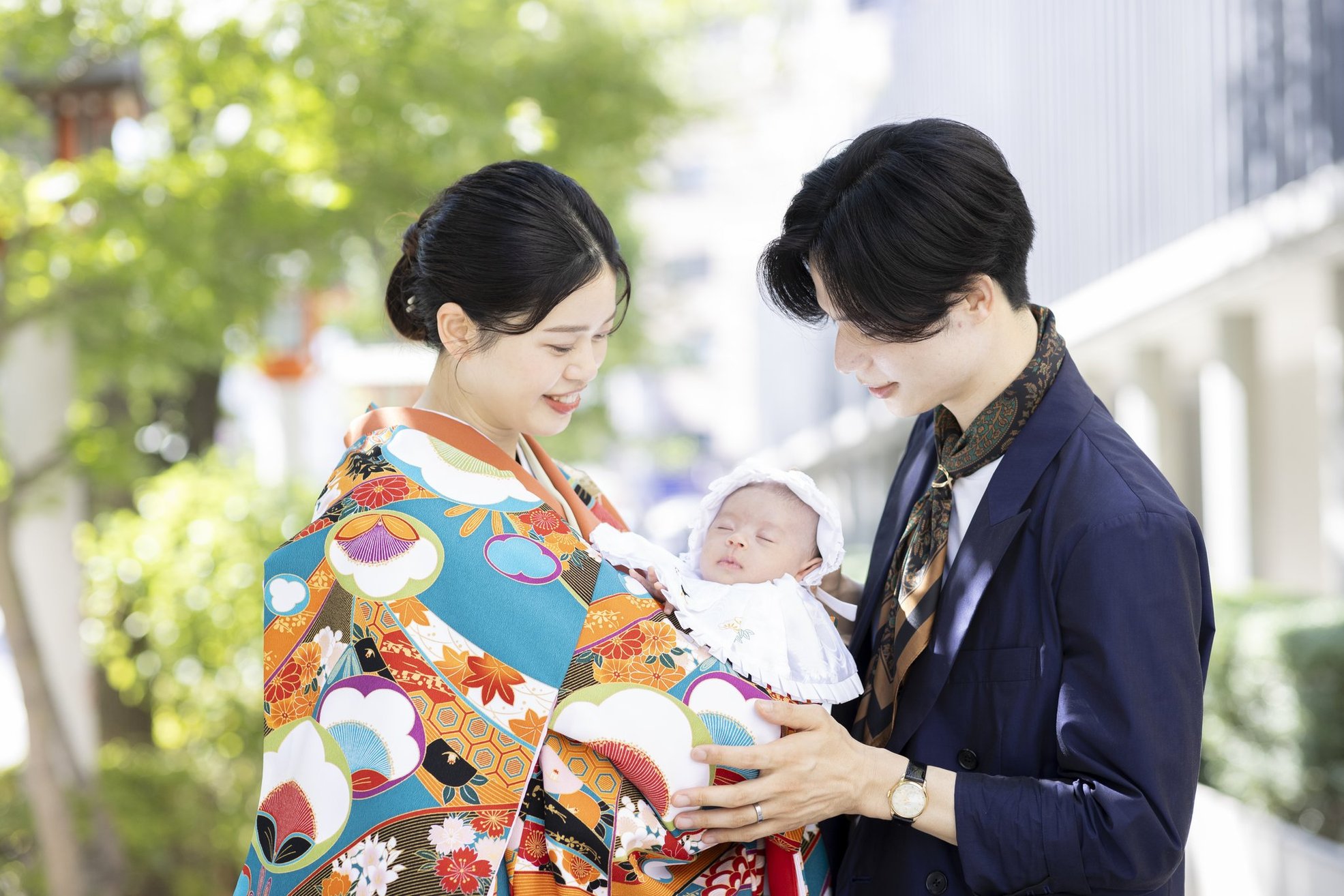 神社でのお参りのシーンはもちろん、赤ちゃんを優しく抱くご両親や、