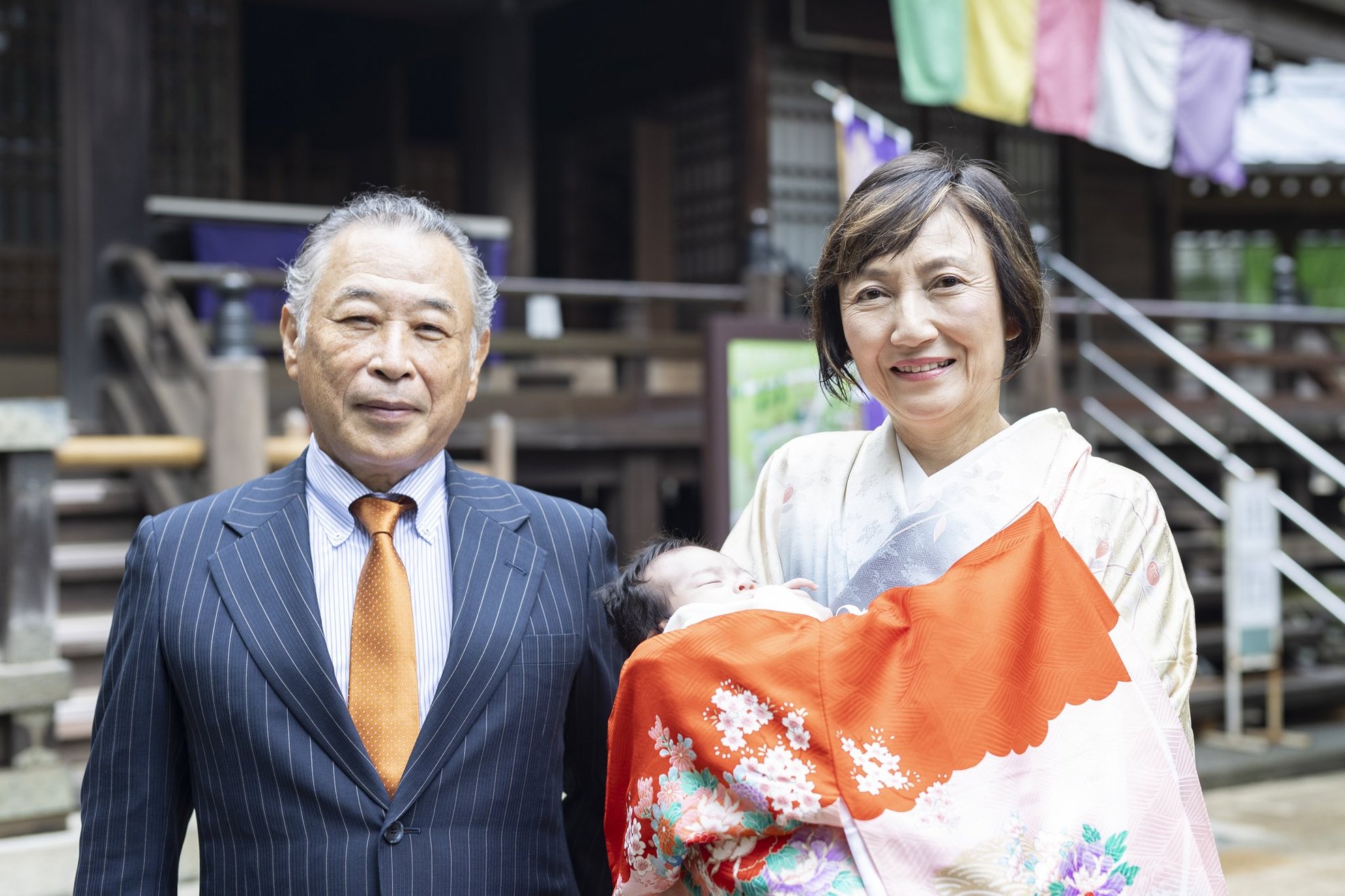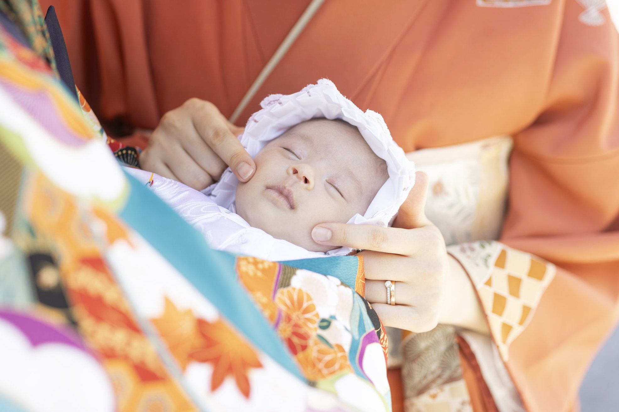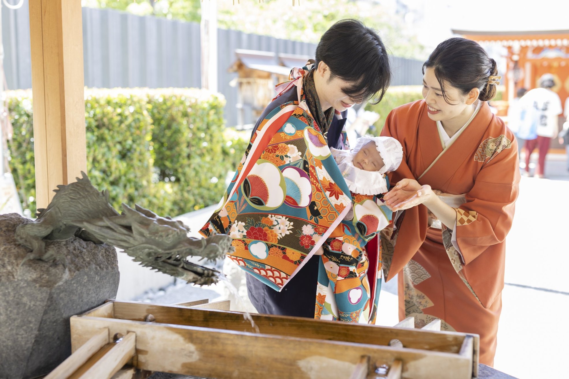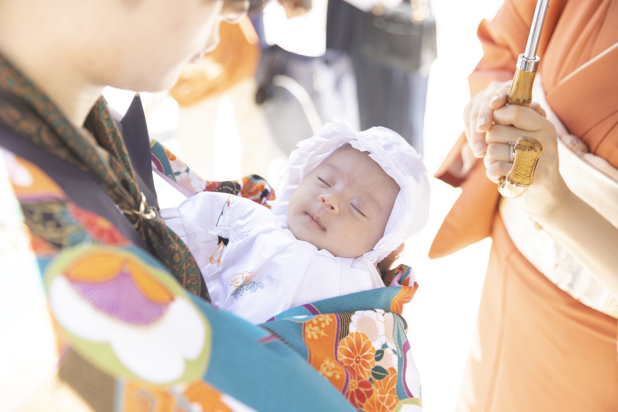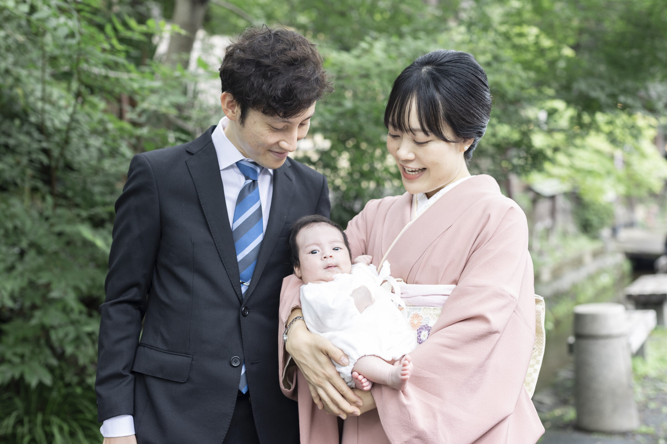 神社でのお参りのシーンはもちろん、赤ちゃんを優しく抱くご両親や、