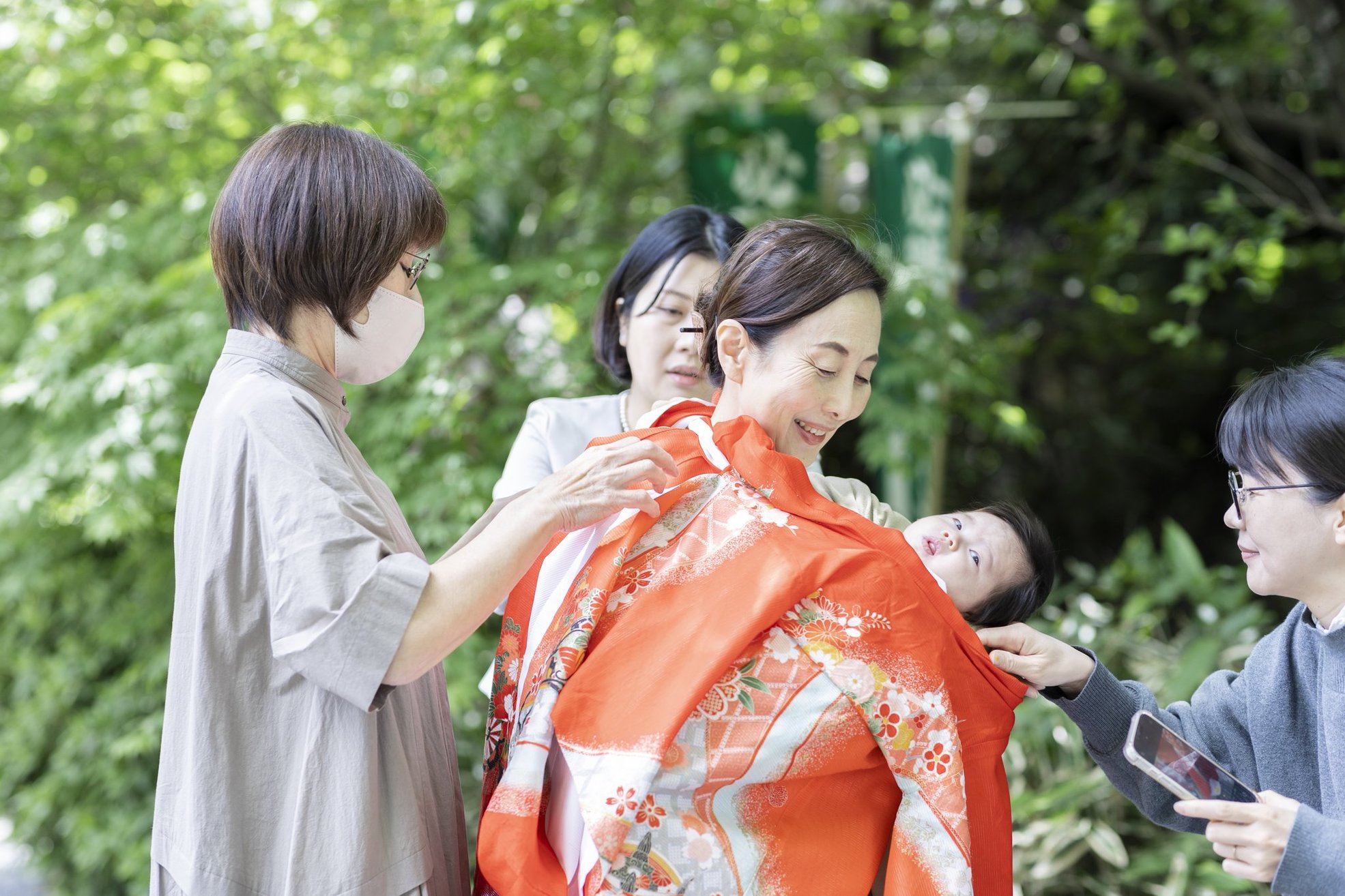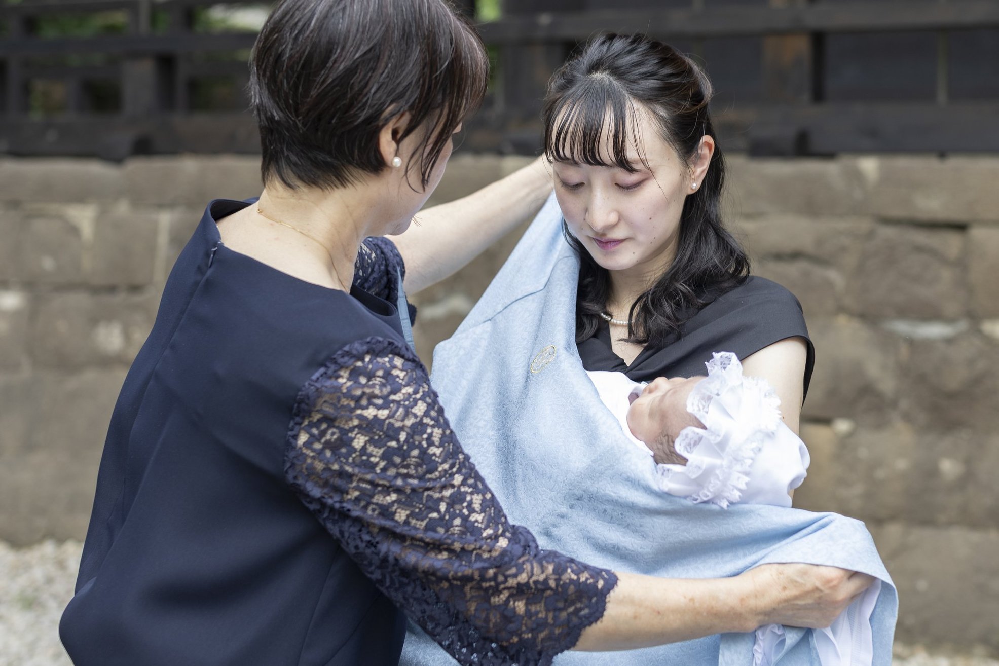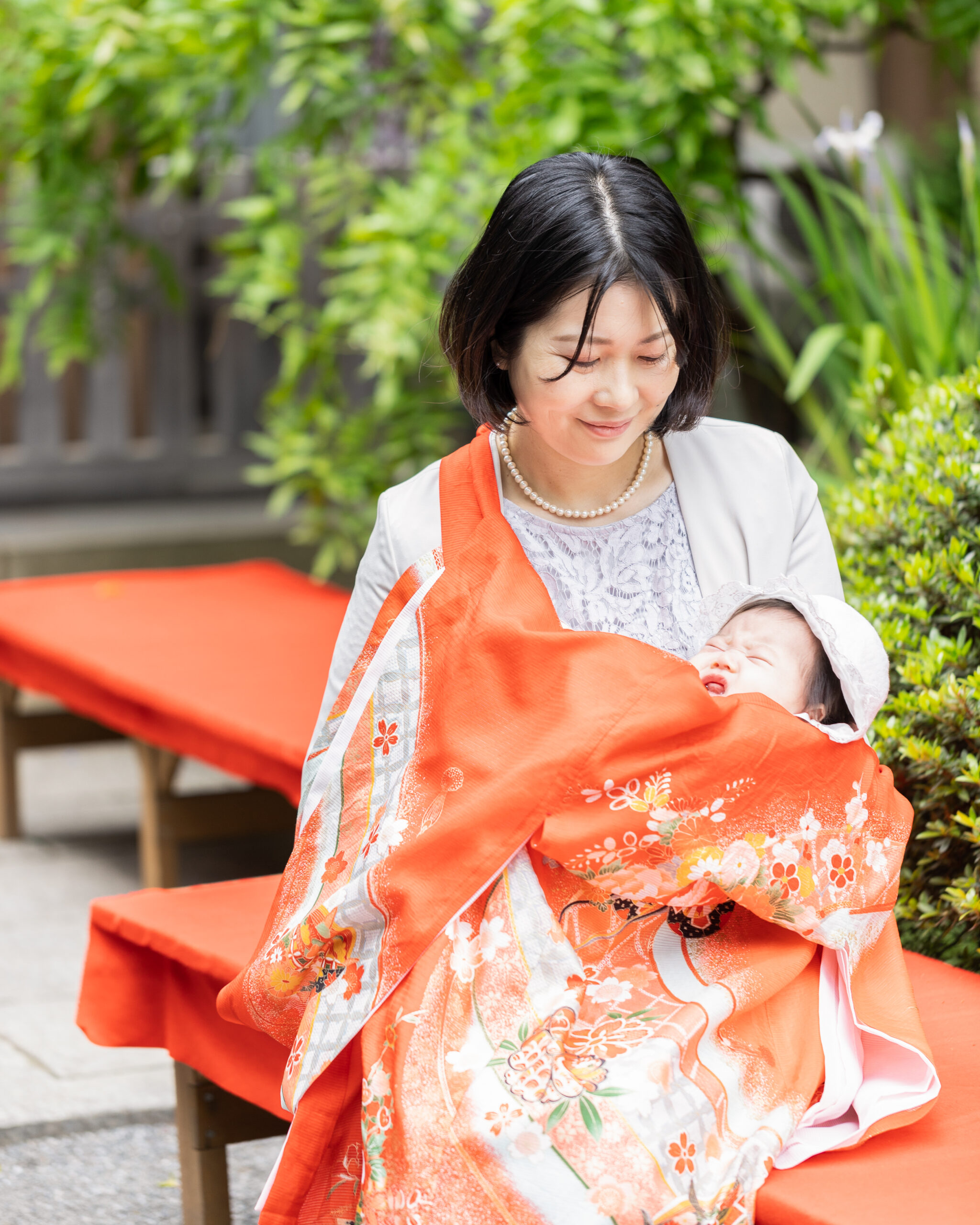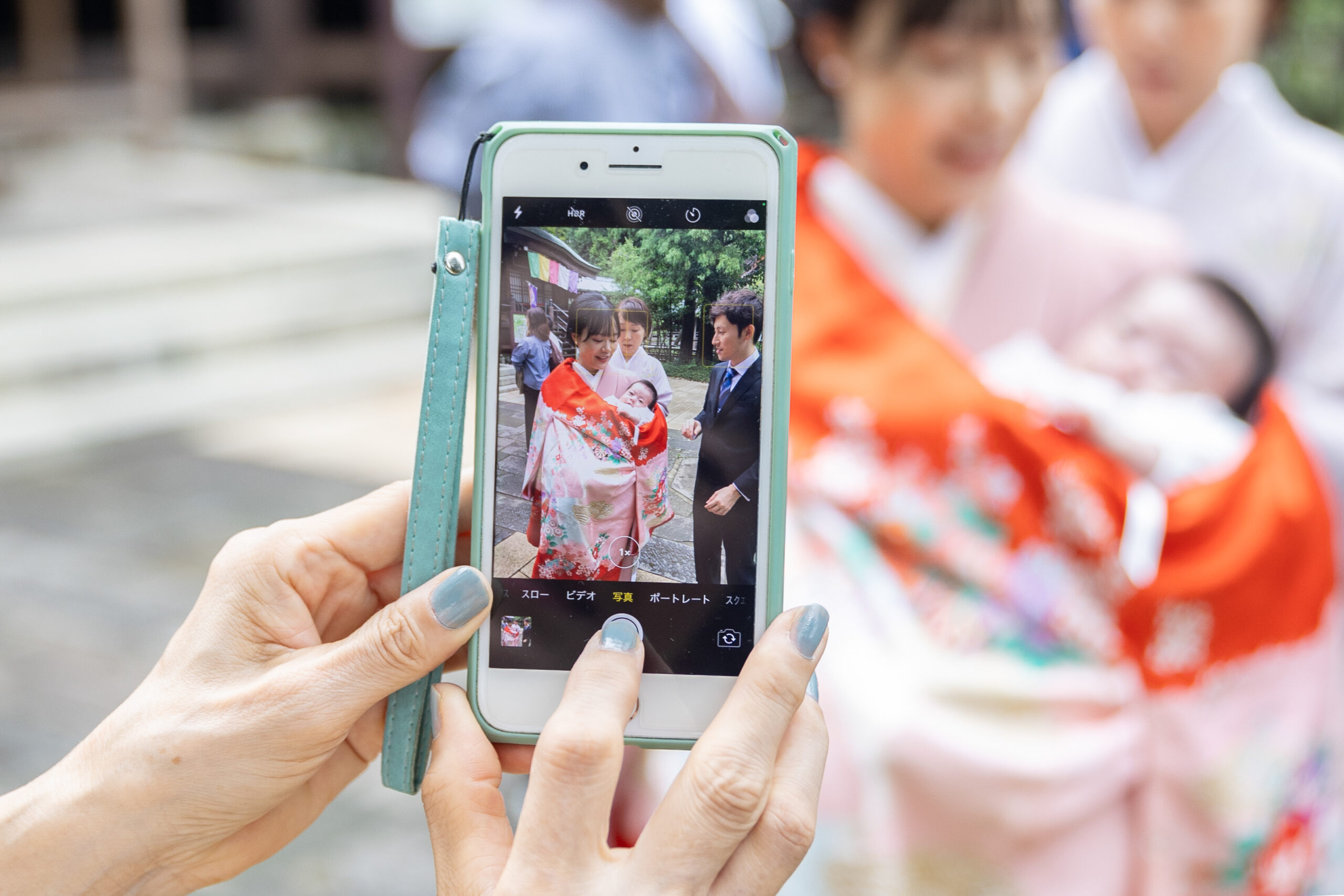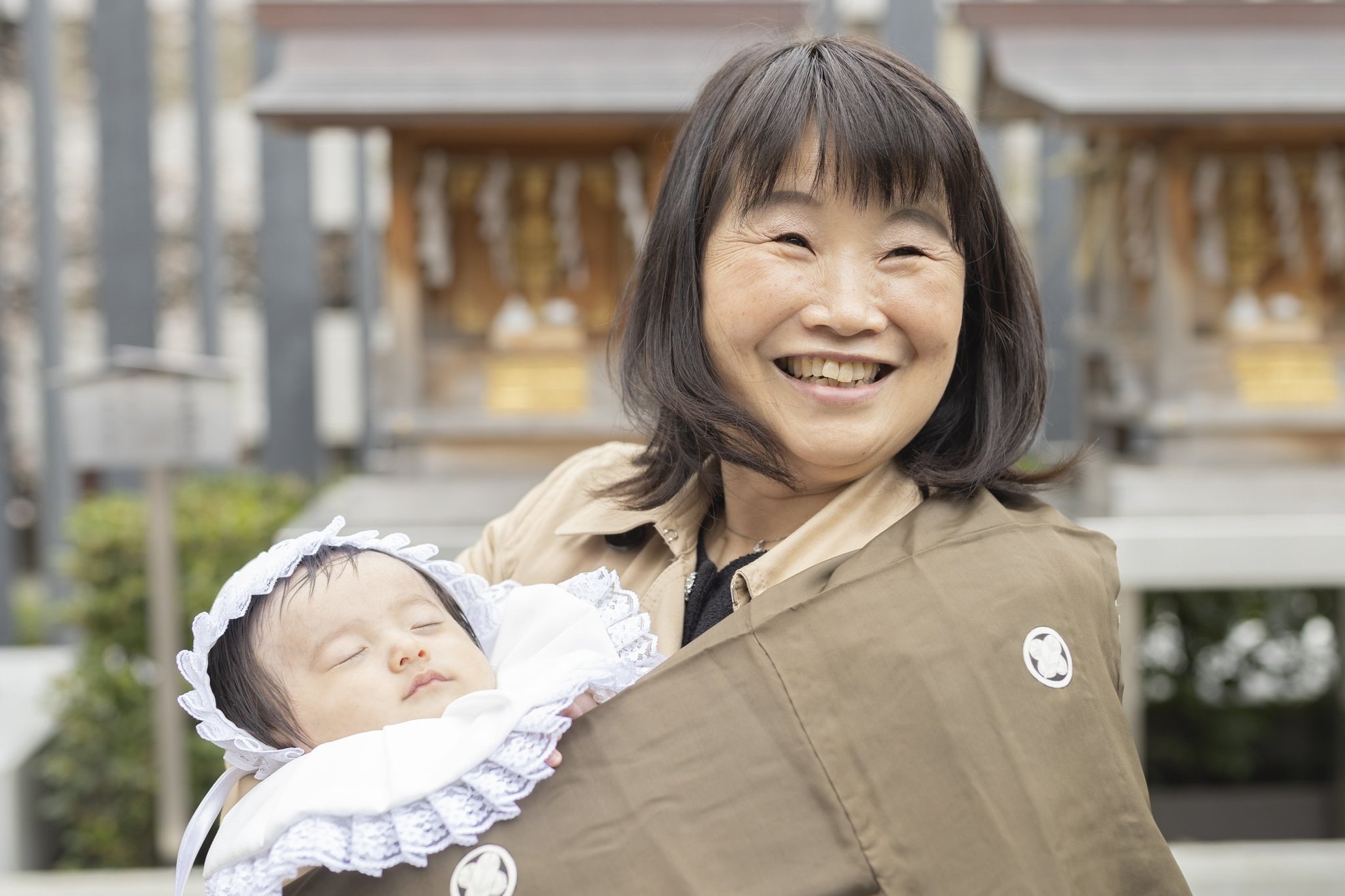 神社でのお参りのシーンはもちろん、赤ちゃんを優しく抱くご両親や、