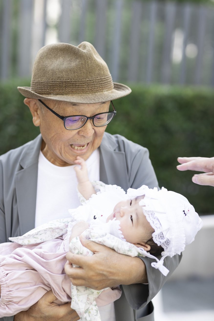 おじいちゃんおばあちゃんに囲まれた笑顔など、その瞬間ならではの温かさを丁寧に切り取ります。